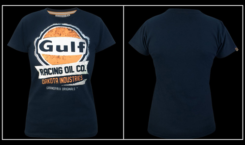 T-shirt femme Gulf Racing Oil Matière : 100 % coton - Couleur : Bleu Marine Coupe légèrement cintrée 49,90 € TTC / Incl. Taxes
