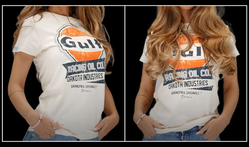 T-shirt femme Gulf Racing Oil Matière : 100 % coton - Couleur : Blanc Crème Coupe légèrement cintrée 49,90 € TTC / Incl. Taxes