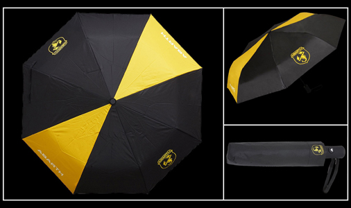 Parapluie compact Abarth Ouverture automatique par bouton - Dimensions 98 cm ouvert / Longueur fermé 28 cm Structure en fibre de verre - Matière 100% polyester Couleur Gris anthracite / Jaune - Avec étui de protection Abarth AB911-15 19,95 € TTC / Incl. Taxes