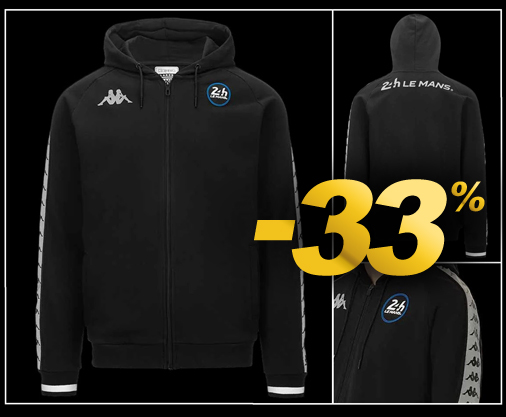 Hoodie homme 24h Le Mans Matière 100% Coton - Fermeture zippée - Capuche réglable Couleur Noir - Poignets et taille côtelés Kappa 371W58W-005