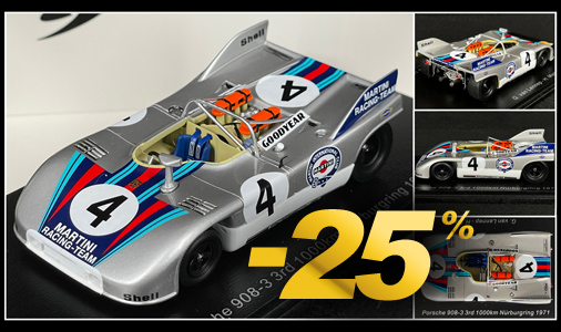 Porsche 908 / 3 Martini n°4 - 3ème 1000km Nürburgring 1971 1/43 - Spark SG518 Edition Limitée - 750 exemplaires numérotés