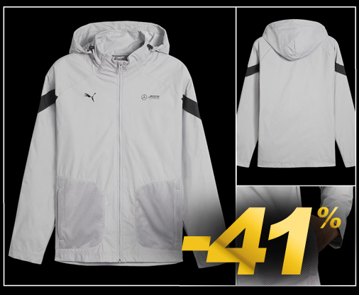 Veste à Capuche homme Mercedes-AMG F1 Matière 100% Polyamide - 2 Couleurs disponibles - Capuche réglable Fermeture zippée - 2 poches latérales Puma 623739-01