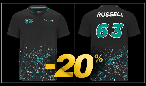 T-shirt mixte George Russell Mercedes-AMG F1 Couleur Noir - Matière 100% Polyester Mercedes-AMG 701220863-001