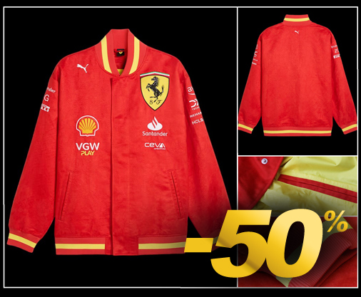 Veste homme Ferrari F1 Matière 100% polyester - Couleur Rouge / Jaune - 2 poches latérales Col style bomber - Poignets et taille elastiqués Puma 701227993-001