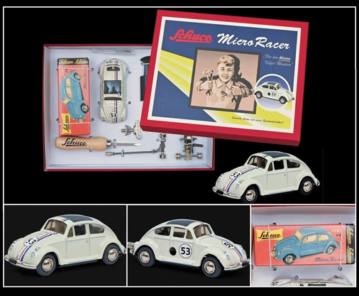 VW Coccinelle n° 53 Choupette Voitures de course Micro racer à monter Micro racer n° 1046 - Longueur 8.5 cm Pneus et pare-chocs caoutchouc - Livré avec boîte de rangement vintage Instructions de montage et livret de jeu inclus Blanc - Schuco 450177800 Edition limitée - 1000 exemplaires 69,95 € TTC / Incl. Taxes