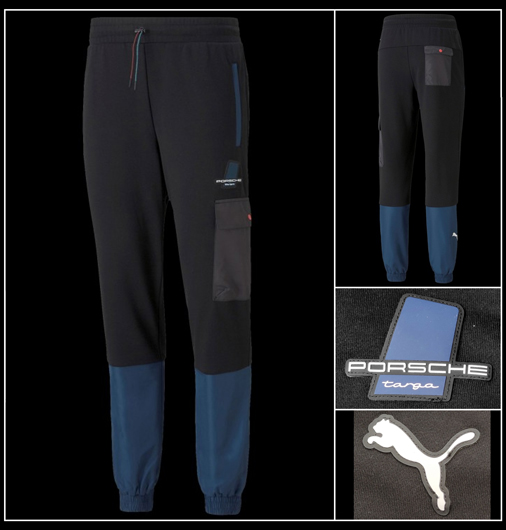 Pantalon homme Porsche by Puma Matière 66 % Polyester / 34% Coton - Couleur Noir / bleu - Bords droits Taille élastiquée avec cordon de serrage - 2 poches zippées - 2 poches à pression Puma 531953-01