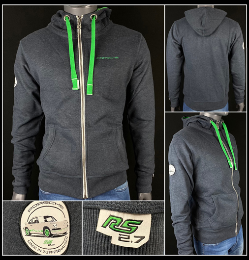 Hoodie homme Porsche 911 Carrera RS 2.7 Matière 60% Coton / 40% Polyester - Couleur gris chiné Patches Carrera RS 2.7 sur la manche et le poignet Porsche WAP954