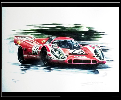 Reproduction Illustration Porsche 917 - Sebring 1971 Illustration tirée d'une acrylique sur toile de Benoît Deliège Edition limitée 100 exemplaires numérotés et signés Format 30 x 40 cm 29,95 € TTC / Incl. Taxes
