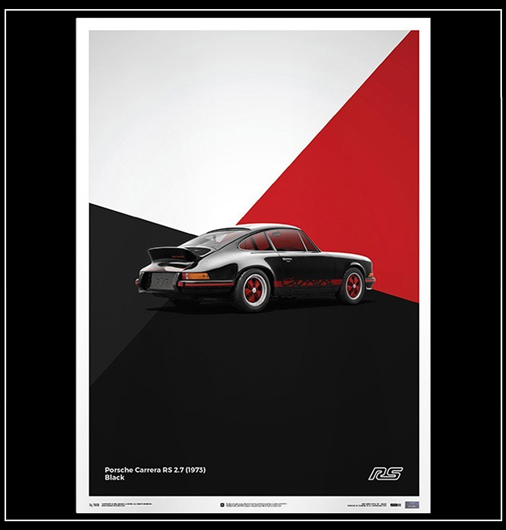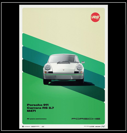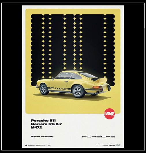 Poster Porsche 911 Carrera RS 2.7 1973 Par l'équipe d'artiste The Automobilist 50 x 70 cm - Papier 175g/m2 - Cadre non fourni Edition Limitée - 911 exemplaires 54,95 € TTC / Incl. Taxes