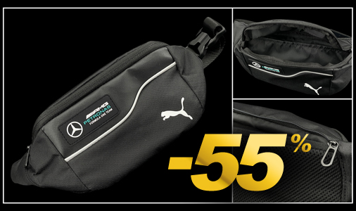 Sac Banane Mercedes-AMG F1 Matière 100% Polyester - Couleur Noir - Compartiment principal spacieux Sangle réglable - Poche arrière zippée - Bande réflechissante sur le devant Mercedes 701227821-001