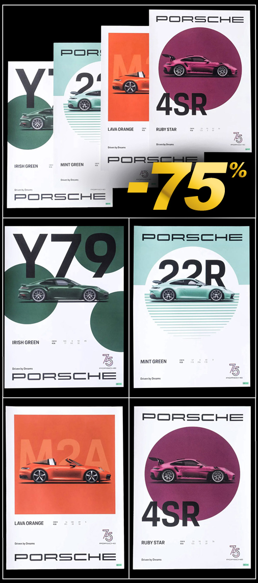 Set of 4 Porsche 911 Posters 75 Years Edition - 50 x 70 cm