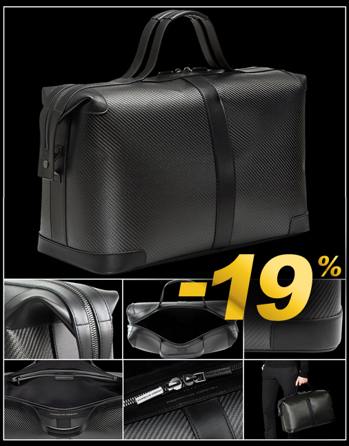 Sac de voyage Porsche Carbone & Cuir Sac week-end en fibre de carbone et cuir Nappa - Couleur Noir - Poids 2.1 kg Bandoulière cuir amovible - Poignées en cuir noir - Grand compartiment principal Grande poche zippée à l'intérieur - Double fermeture éclair verrouillable Fermeture sécurisée par boutons pression - Dimensions 52 x 29 x 27 cm Porsche Design 4090002597