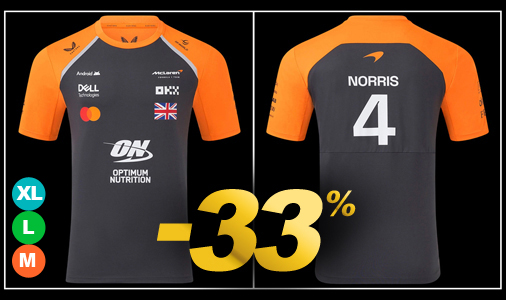 T-shirt homme Lando Norris McLaren F1 - Tailles M / L / XL seulement Matière 88% Polyester / 12% Elasthanne - Couleur Gris Phantom McLaren TM9912-126