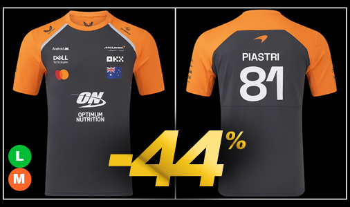 T-shirt homme Oscar Piastri McLaren F1 - Tailles M / L seulement Matière 88% Polyester / 12% Elasthanne - Couleur Gris Phantom McLaren TM9914-126