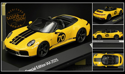 Porsche 911 Spirit 70 Cabriolet - IAA Edition 2025 Jaune Vitesse 1/43 - Spark WAP0200200T070 Edition Limitée - 1000 exemplaires numérotés 99,95 € TTC / Incl. Taxes