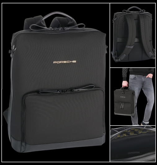 Sac à dos Porsche Spirit 70 Grand compartiment principal zippée pour ordinateur portable 13" - Matière Cuir / Polyester Bretelles rembourrées et réglables - Organiseur professionnel sur le devant Passage pour trolley à l'arrière - Dimensions 15,5 x 35 x 4 cm Porsche WAP0350170RHBP 279,95 € TTC / Incl. Taxes