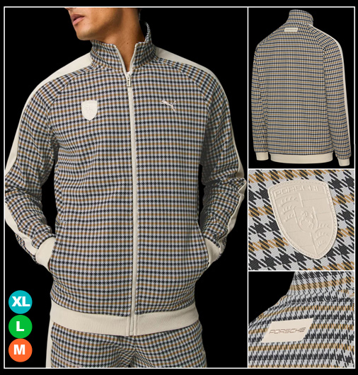 Veste homme Porsche Targa 60 Ans - Tailles M / L / XL seulement Matière 62% Coton / 38% Polyester - Tissu Jacquard à motif Pepita - Fermeture zippée 2 poches latérales - Taille et manches élastiquées - Couleur Beige Porsche WAP114T60Y 159,95 € TTC / Incl. Taxes