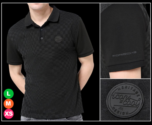 Polo homme Porsche 911 Spirit 70 - Tailles XS / M / L seulement Matière 60% Polyester / 33% Viscose / 4% Elasthanne - Couleur Noir - Col boutonné Porsche WAP511RS70 94,95 € TTC / Incl. Taxes