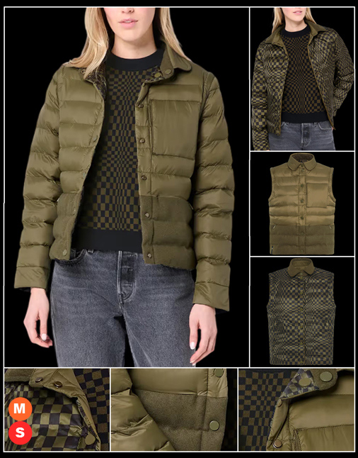 Veste réversible femme Porsche Spirit 70 - Tailles S / M seulement Matière Nylon / Polaire - Couleur Olive Neo - Fermeture par boutons-pression Manches amovibles - 2 poches latérales zippée - 1 poche poitrine Porsche WAP512RS70 399,95 € TTC / Incl. Taxes