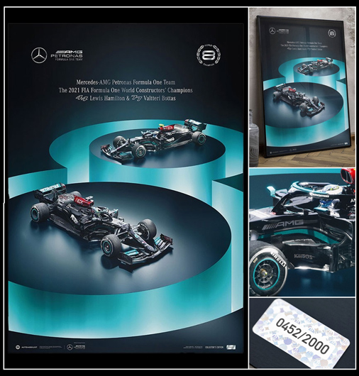 Poster Mercedes-AMG Petronas F1 2021 Affiche originale 175g/m2 - Format 50 x 70 cm - Cadre non fourni Série limitée - 2000 exemplaires 109,95 € TTC / Incl. Taxes