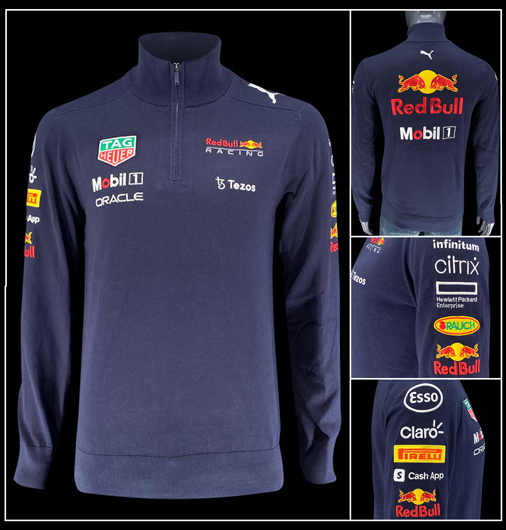 Sweat homme Redbull Racing Tag Heuer Col montant avec fermeture par demi-zip - Col, taille et poignets côtelés Couleur : Bleu Marine - Matière : 100% coton RedBull Racing 701219154-001 119,95 € TTC / Incl. Taxes