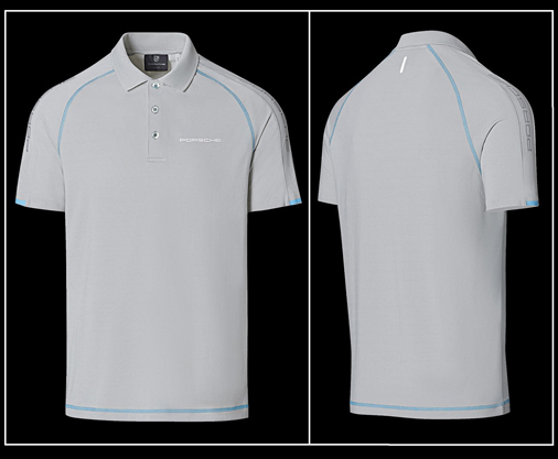 Polo homme Porsche Sport Collection Matière anti-humidité / séchage rapide - Manches raglan / Col trois boutons Tissu piqué extensible léger et respirant - Matière 100% Polyester Couleur Gris clair / détails Bleu clair Porsche WAP534M0SP 79,95 € TTC / Incl. Taxes