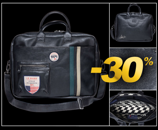 Sac en cuir Messenger 24h Le Mans Steve McQueen Matière Cuir de mouton - Grand compartiment interne - Bandoulière réglable 2 anses - 1 poche zippée sur le devant - 1 poche intérieure Dimensions 31 x 42 x 8 cm - 2 couleurs disponibles Classic Legend Motors 27282