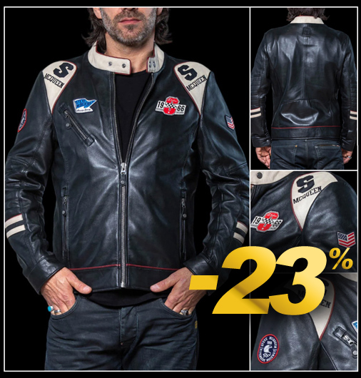Veste en Cuir homme Steve McQueen Riverside Matière 100% cuir - Doublure 100% Coton - Couleur Noir - Col pressionné Fermeture zippée - 2 Poches latérales zippées - 1 poche poitrine Classic Legend Motors 27493-3046