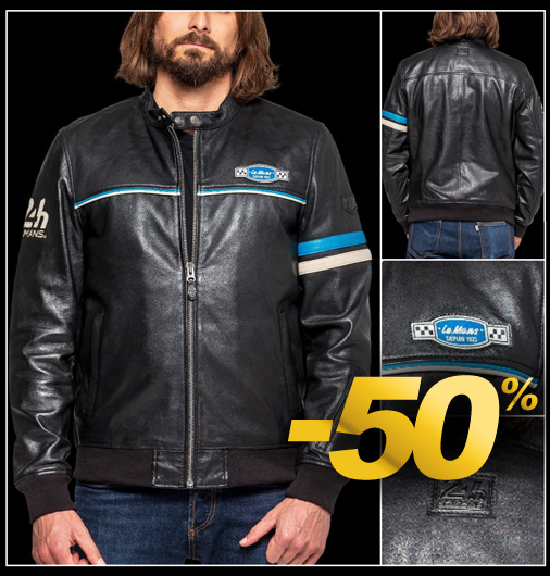 Veste en Cuir homme 24h Le Mans Matière 100% cuir de mouton - Couleur Noir - Col pressionné Fermeture zippée - 2 Poches latérales zippées - 2 poches poitrine Classic Legend Motors 27475-3046