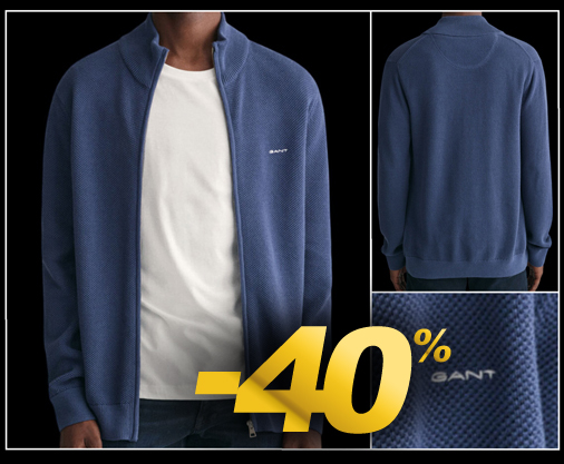 Cardigan homme Gant Matière 100% coton - Fermeture zippée - Couleur Bleu Maritime
