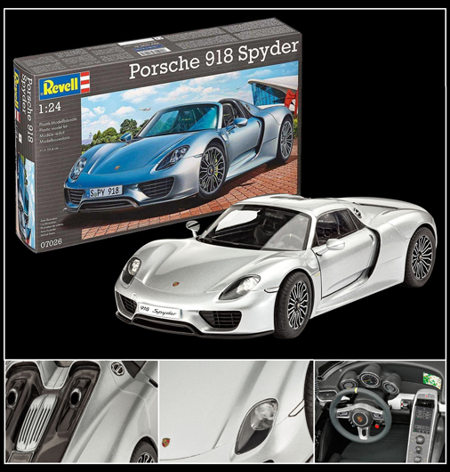 Maquette Porsche 918 Spyder Maquette à construire, coller et peindre - Instructions de montage détaillées Moteur en plusieurs éléments - Roues libres Carrosserie en plusieurs éléments - Capot moteur mobile Longueur 19,4 cm - 1/24 - Revell 07026 Colle et peinture non incluses 29,95 € TTC / Incl. Taxes