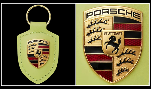 Porte-clés Porsche Ecusson Matière 58% Cuir / 42% Laiton - Ecusson céramique et métal 3 cm Pièce de cuir 7 cm - Couleur Jaune Carthagène - Anneau métal doré Porsche WAP0503570SWSA 34,95 € TTC / Incl. Taxes