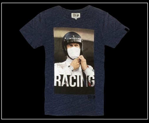 T-shirt homme Steve McQueen - Racing Le Mans Photo de Steve McQueen extraite du film Le Mans imprimé sur le devant Matière 100 % coton - Couleur Bleu marine 49,95 € TTC / Incl. Taxes