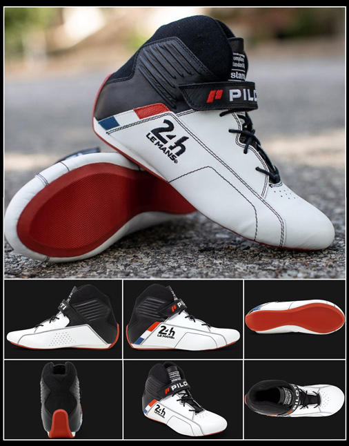 Chaussure de pilote pour homme - 24h du Mans Bottine édition limitée spécial Track days - Matière Cuir / Polyamide Couleur blanc / noir - Drapeau français en cuir Certifié FIA 8856-2000 / classé SFI 3.3/5 269,95 € TTC / Incl. Taxes
