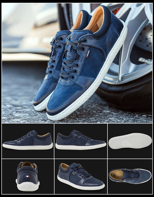 Chaussure de conduite Sneaker sport pour homme - 24h du Mans Confort et une respirabilité accrus pour une utilisation toute la journée Fabriqué à la main / montage cousu Strobel - Couleur Bleu marine Matière 100% cuir italien souple premium 179,95 € TTC / Incl. Taxes