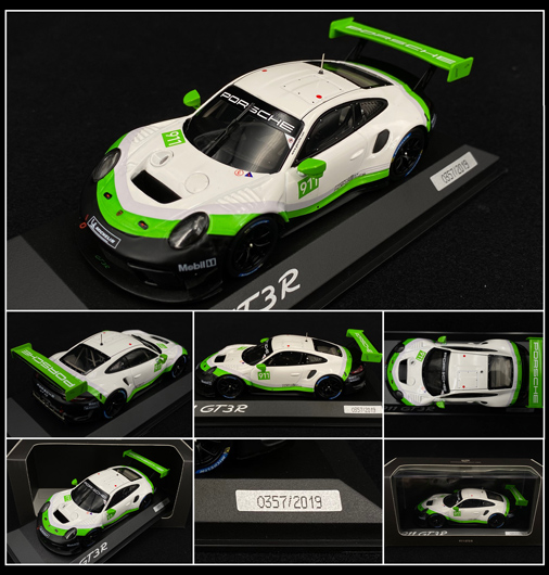 And here it is in 1/43 at Selection RS, followed by the Aventurine green version as well as another premier model: the 2019 Porsche 991 GT3 R and its green and white livery.