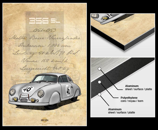 Illustration - Porsche 356 SL 40 x 60 cm - Impression sur aluminium