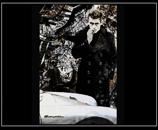 Reproduction d'une oeuvre originale de Caroline Llong James Dean Porsche 550 - Dimensions 84 x 59 cm Composition à partir d'images originales 29,95 € TTC / Incl. Taxes