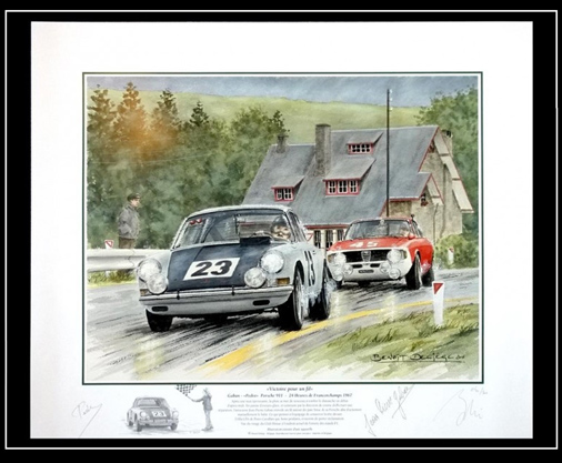 Illustration Dédicacée Porsche 911 Francorchamps 1967 50 x 60 cm