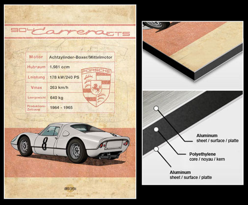 Illustration - Porsche 904 Carrera GTS 40 x 60 cm - Impression sur aluminium
