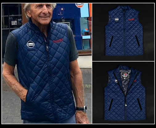 Veste homme sans manches sport Gulf - Derek Bell Fermeture éclair avec tirette en forme de pédale d'accélérateur Détails en velours noir sur les poches - 2 poches extérieures - 2 poches intérieures Couleur bleu marine - Matière 100% Nylon