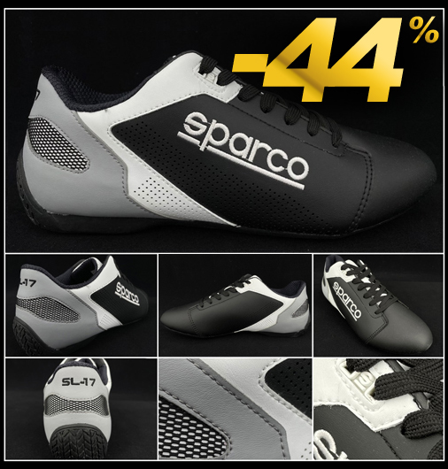 Chaussure homme Sparco Sneaker SL-17 Confort et respirabilité accrus pour une utilisation toute la journée Doublure en filet respirant - Semelle intérieur avec revêtement anti choc Couleur noir / blanc / gris - Sparco 001263NRBI