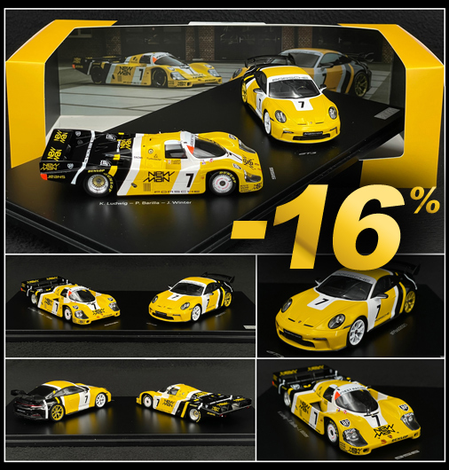 LAST PIECES IN THE WORLD Set Porsche 956 Winner 24h Le Mans 1985 & Porsche 911 GT3 Paolo Barilla 2022 - 1 : 43
