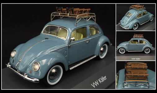 Volkswagen Beetle Type 1 Split 1951 avec galerie de toit et luges Bleu pastel 1/43 - Schuco 450270900 Edition limitée - 750 exemplaires 49,95 € TTC / Incl. Taxes