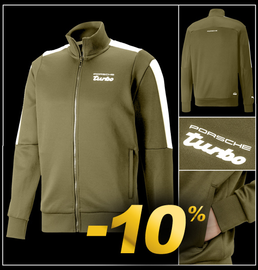 Veste homme Porsche Turbo by Puma 2 poches latérales - Taille élastique à la ceinture et aux poignets - Fermeture par zip Couleurs : Vert Olive / Blanc / Jaune - Matière : 66% Polyester / 34% Coton Puma 533782-03