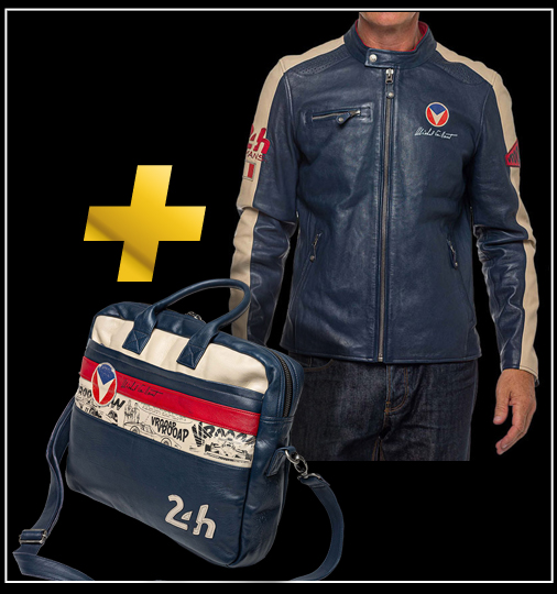 Duo 24h Le Mans Michel Vaillant Men's Leather Jacket + Shoulder Bag