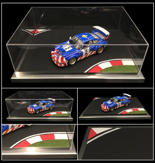 Vitrine Diorama Circuit Virage Course 1 : 18 - Qualité Premium Base cadre métal / fond Acrylique - Matière Acrylique anti-rayures 3.5 mm Dimensions L/H/P 42.5 / 12.5 / 31.3 cm - Modèle non compris 119,95 € TTC / Incl. Taxes
