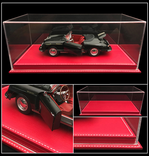 Vitrine pour Miniature 1 : 18 Base rouge simili cuir / surpiqûre blanche Qualité Premium