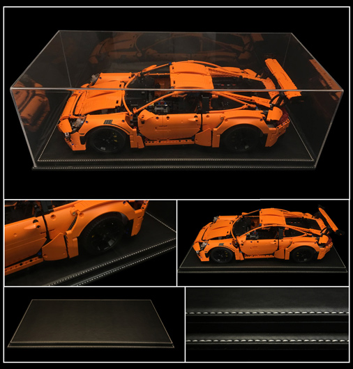 Vitrine Anti-poussière pour Lego Porsche 1 : 8 - Qualité Premium Base noire simili cuir / surpiqûre blanche - Matière Acrylique anti-rayures 3.5 mm Dimensions LxHxP : 65 x 31 x 21 cm - Modèle non compris 199,95 € TTC / Incl. Taxes