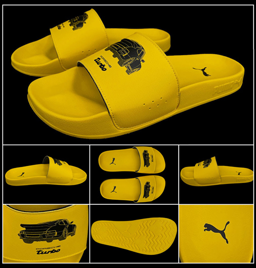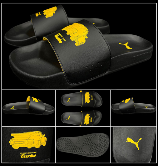 Sandales mixte Porsche Turbo by Puma Dessus en simili Cuir rembourré - Doublure tissu respirant Semelle synthétique 100% EVA - Couleur Jaune Puma 307568-02 39,95 € TTC / Incl. Taxes